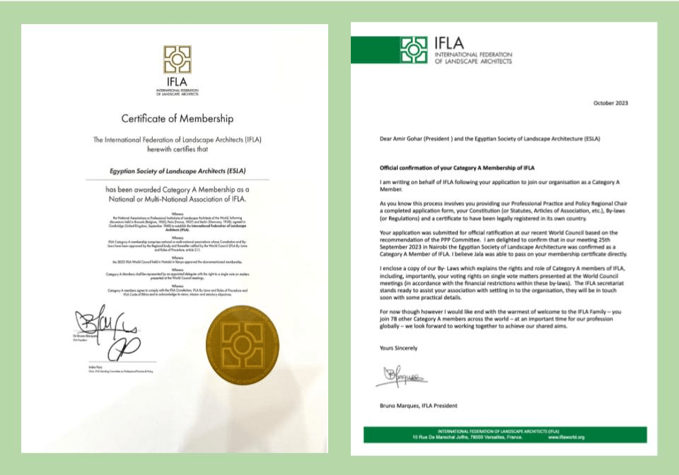 During, and right after, the world congress of the International Federation of Landscape Architects (IFLA) the applications from the Egyptian Society of Landscape Architects (ESLA) was approved and our new members given a warm welcome to the IFLA family. Their joining us means we now have 80 member associations representing more than 70,000 landscape architects worldwide.