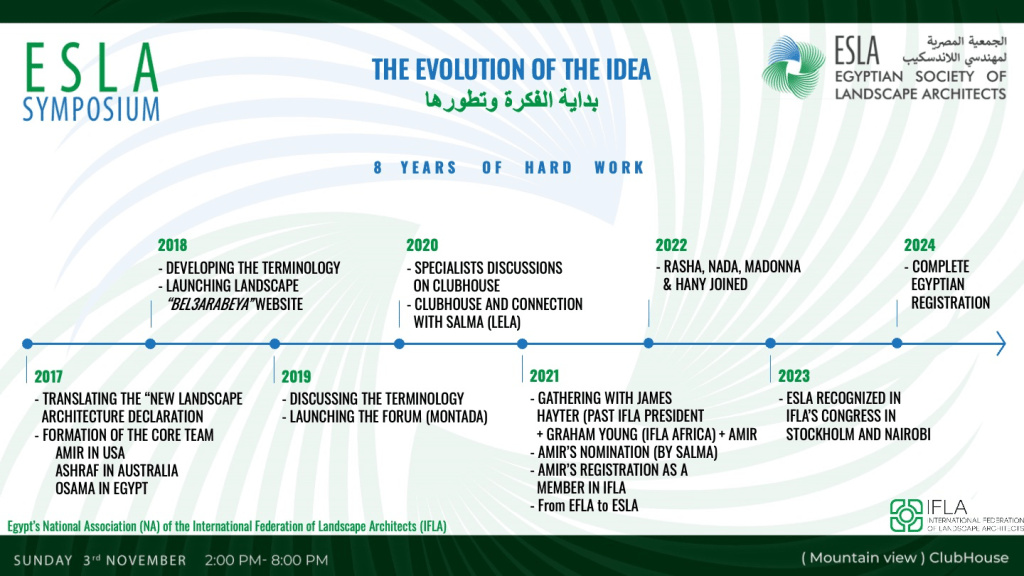 - Mohamed Refaat (ESLA Panel Expert): The Evolution of Landscape Architecture in Egypt